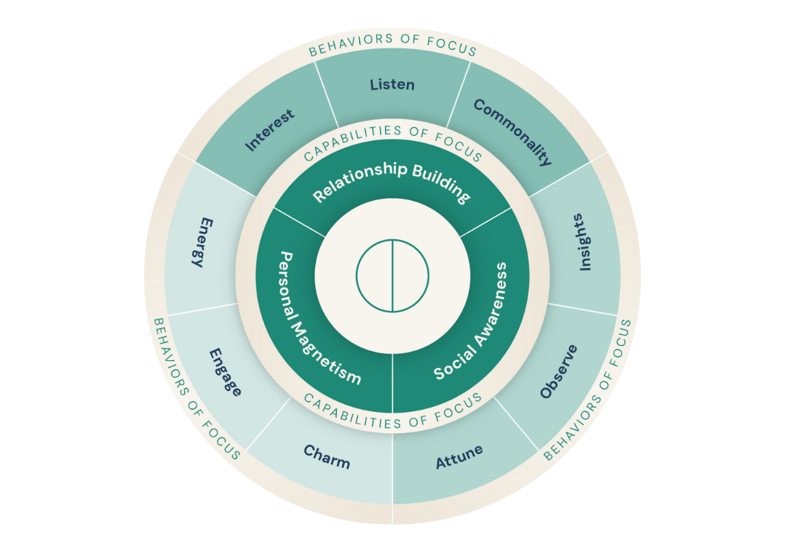 To develop Focus, leaders must strengthen behaviors in three core leadership capabilities: Relationship Building, Social Awareness, and Personal Magnetism.